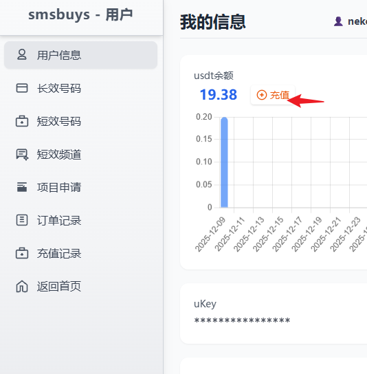 在用户信息页,点击充值。